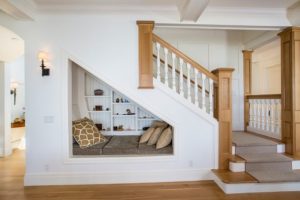 Anda bisa menyulap ruang bawah tangga Anda menjadi sebuah ruang pribadi seperti gambar di atas. Di ruangan ini Anda bisa melakukan apa saja yang Anda inginkan untuk menikmati waktu pribadi, seperti membaca buku, menerima telepon, dan lain sebagainya.