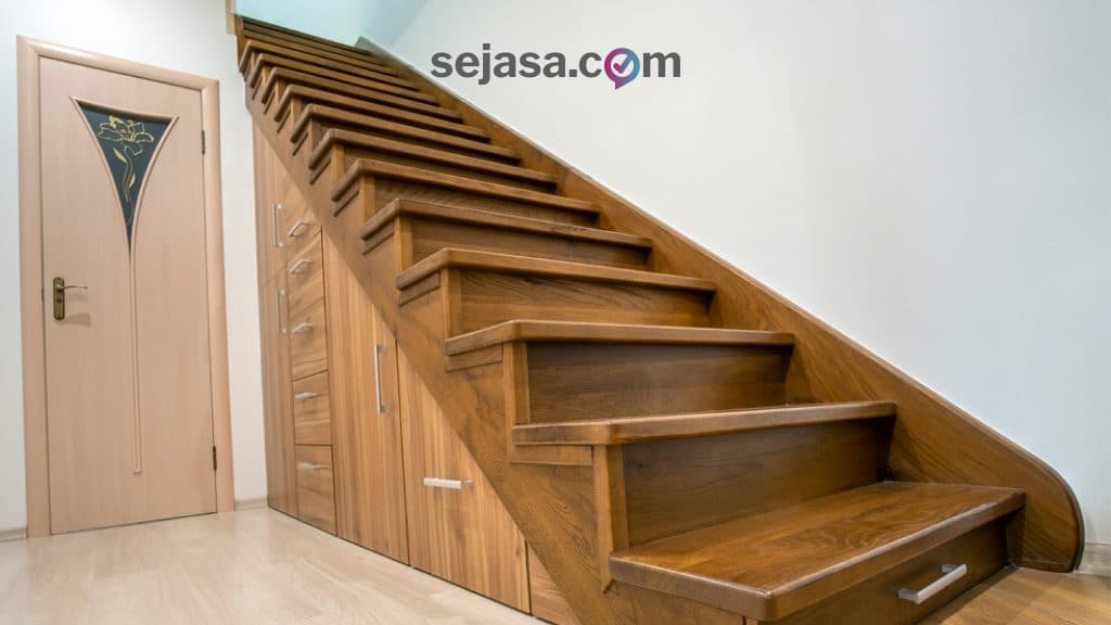 Tangga kayu sekaligus tempat penyimpanan