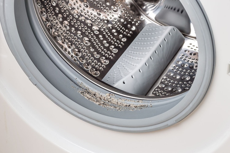 Mesin cuci bukaan depan sangat rentan terhadap penumpukan sisa deterjen, pelembut, dan kelembaban di dalam drum serta di lipatan karet pintu (gasket), memicu pertumbuhan jamur dan bakteri.
