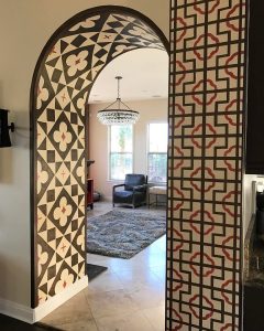 Detail arsitektural pada ruangan bisa lebih maksimal seperti pada pintu lengkung ini. Selain bentuknya yang unik, pola yang dipakai dapat menarik perhatian yang lebih.
