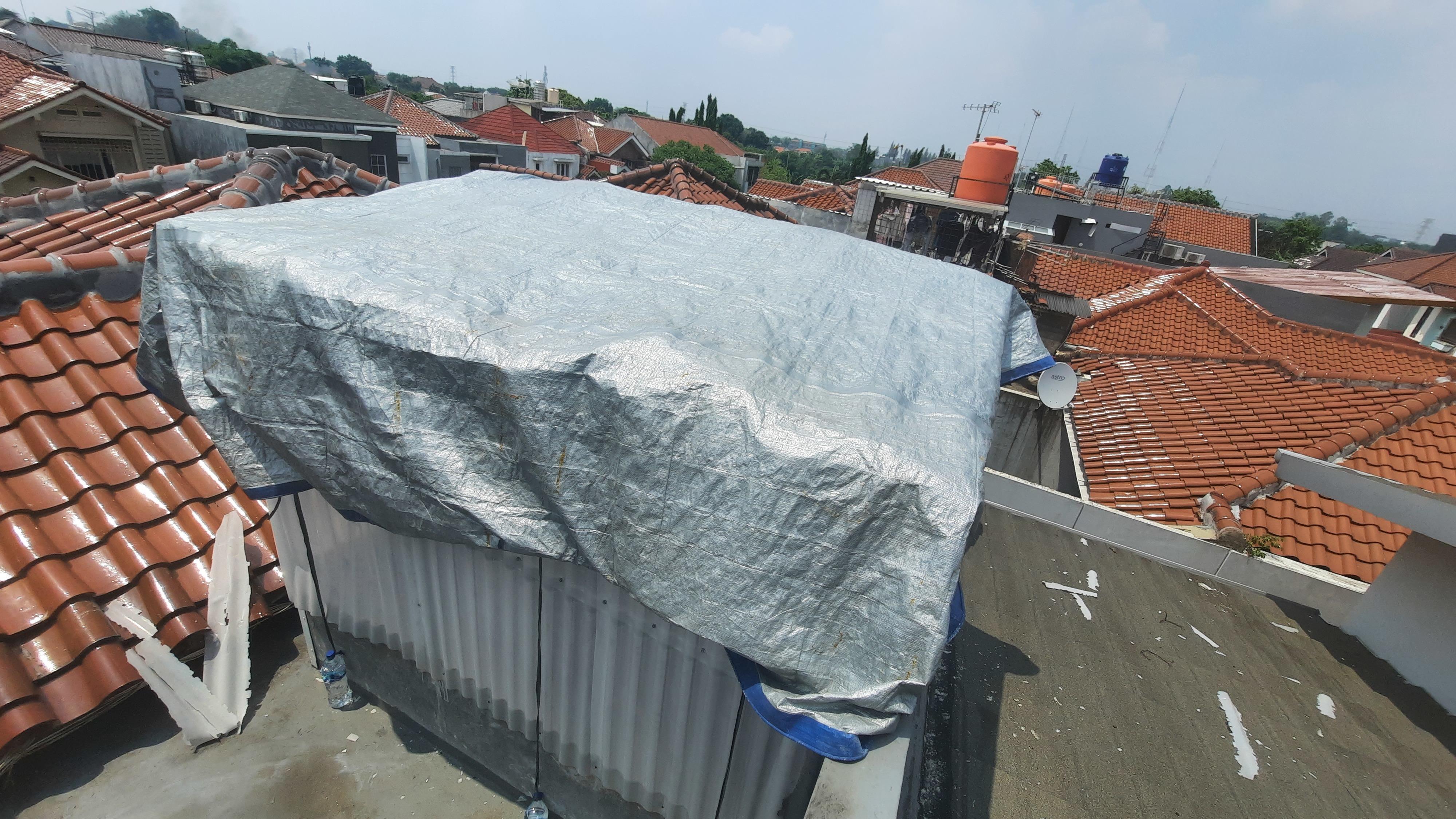 Bongkar kanopi yang lama dan pasang kanopi baru