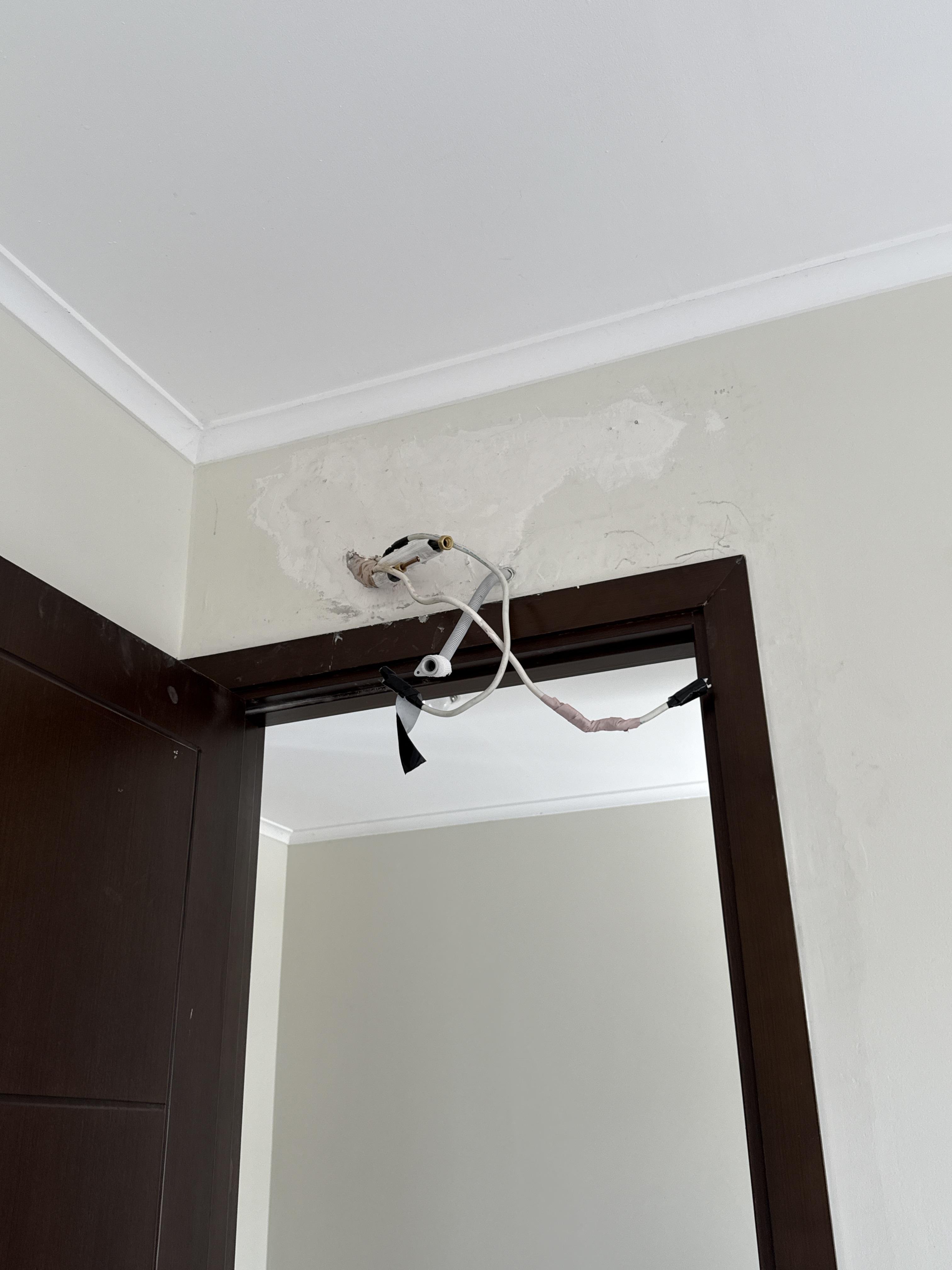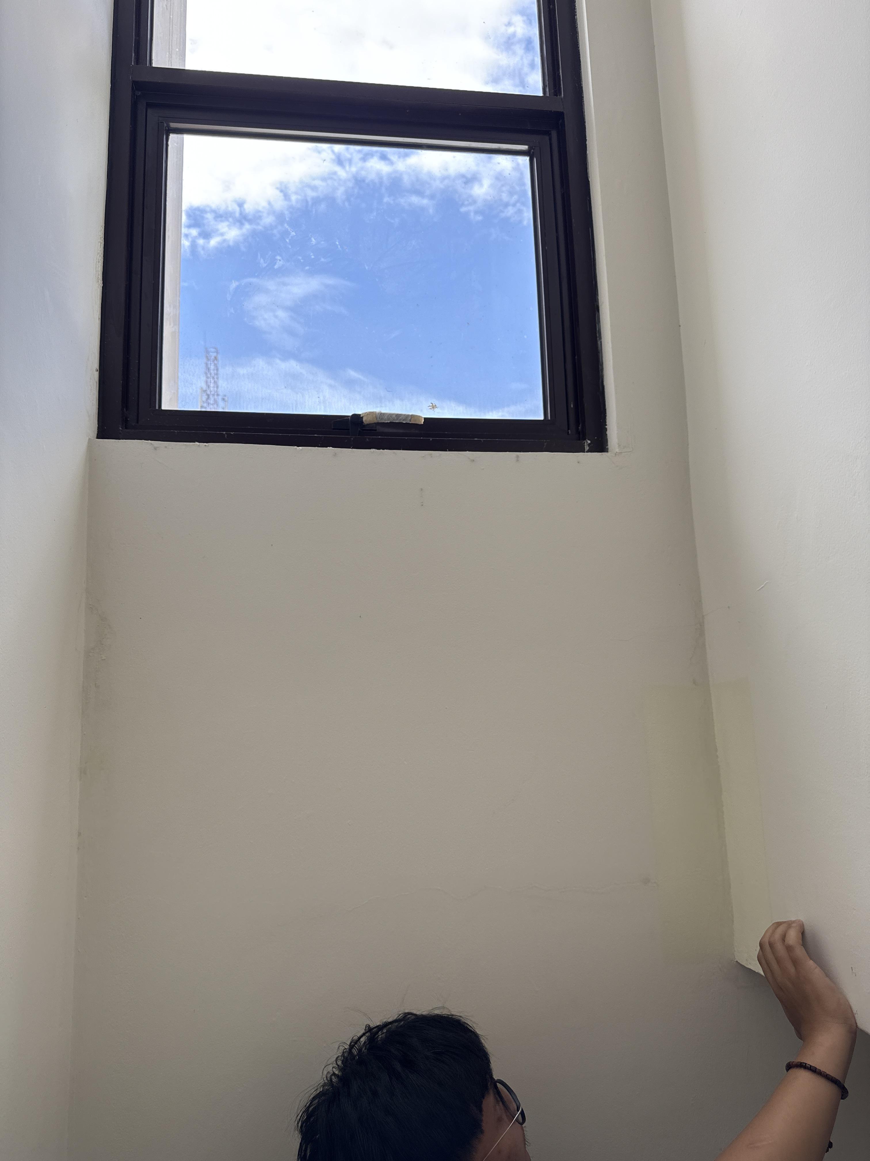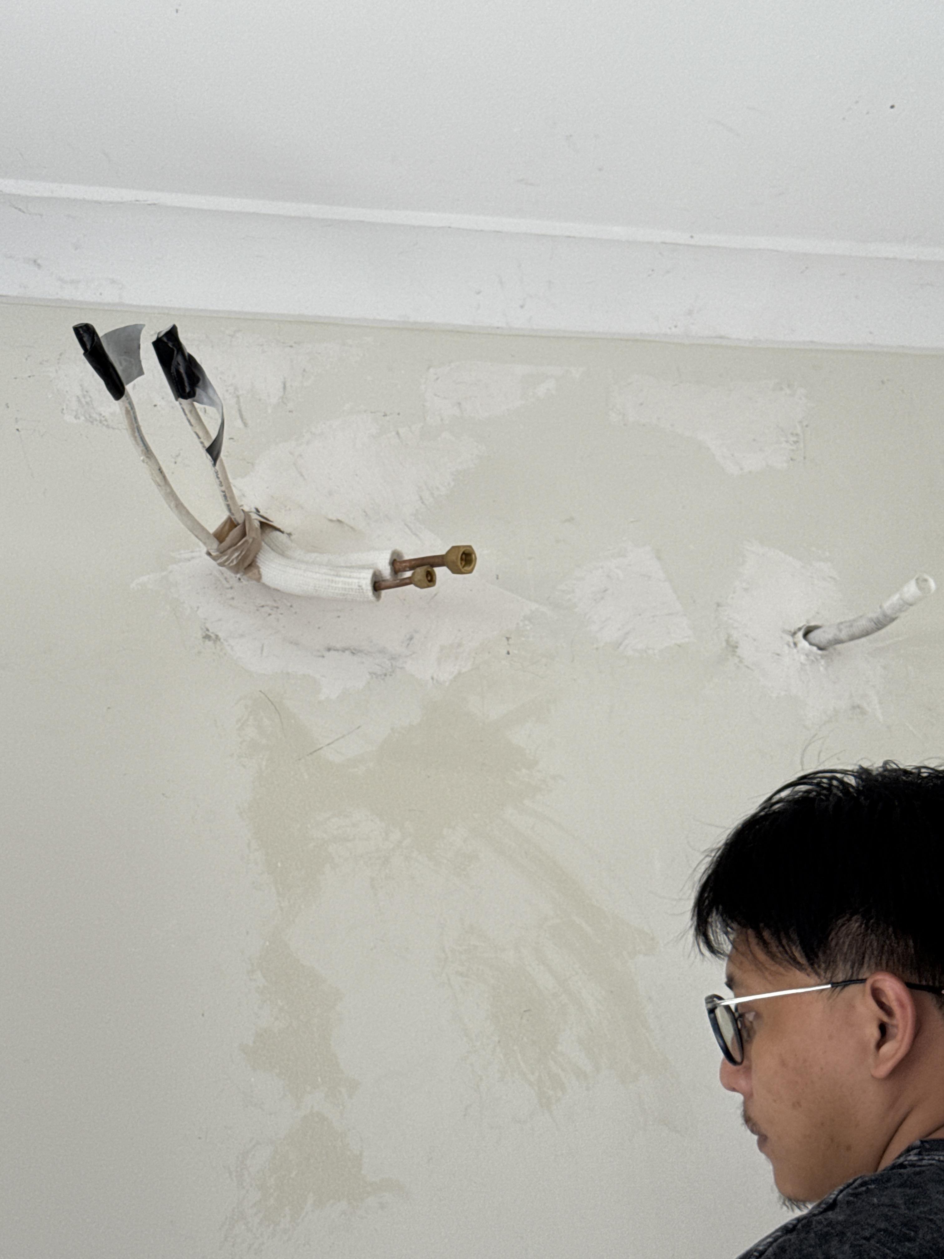 menambal cat di bagian belakang ac