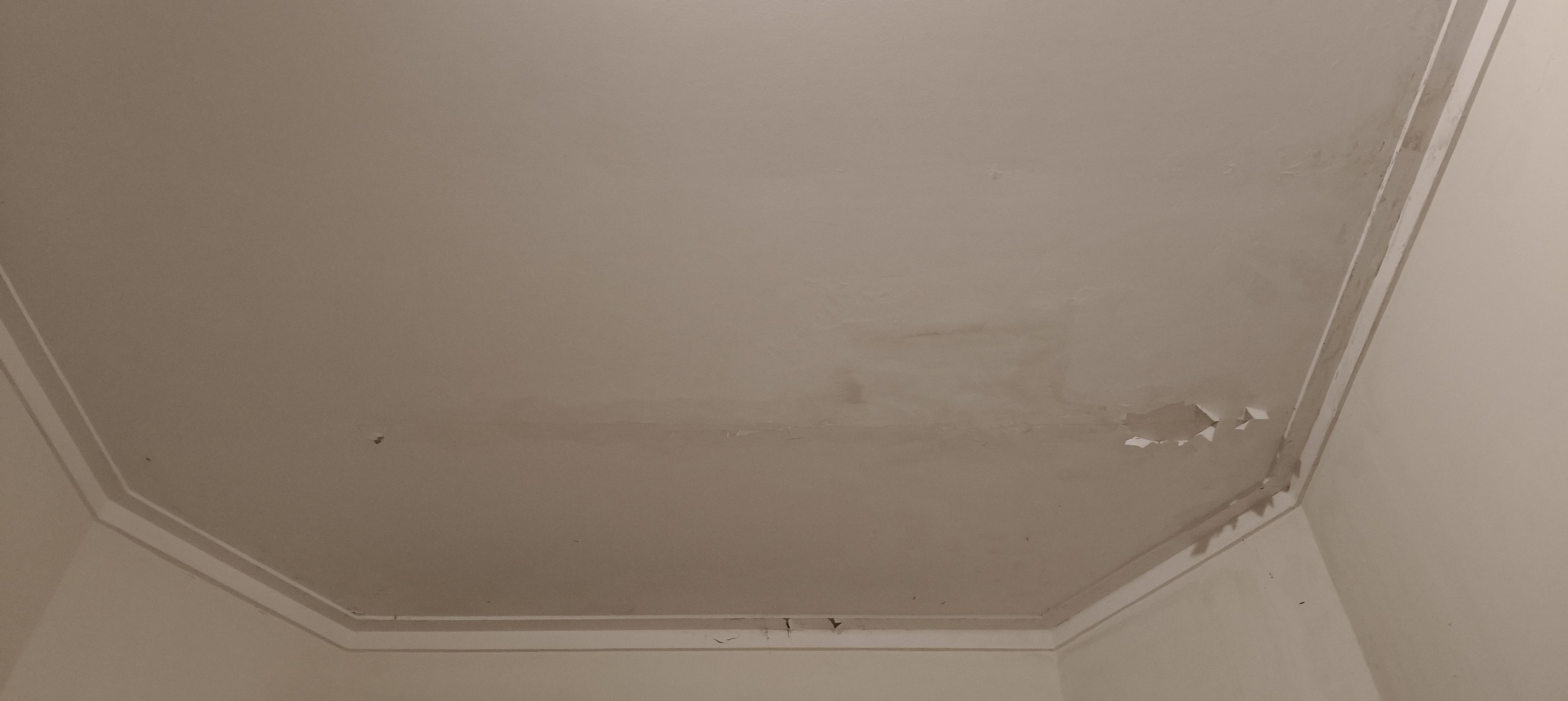Pengecekan apakah ada genteng yang pecah karena air hujan merembes dari plafon (gypsum).
