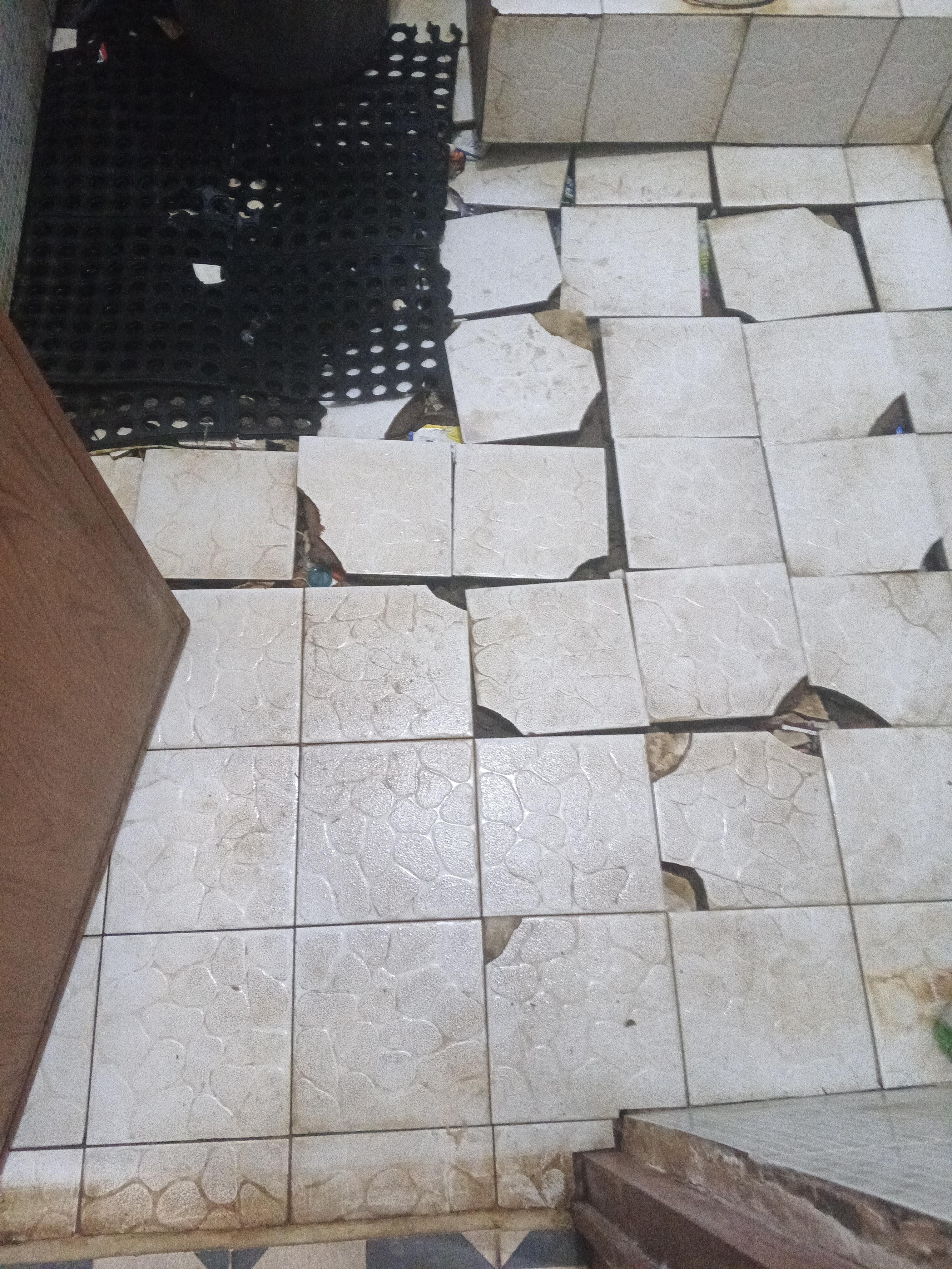 Bongkar lantai lama dan pasang lantai baru