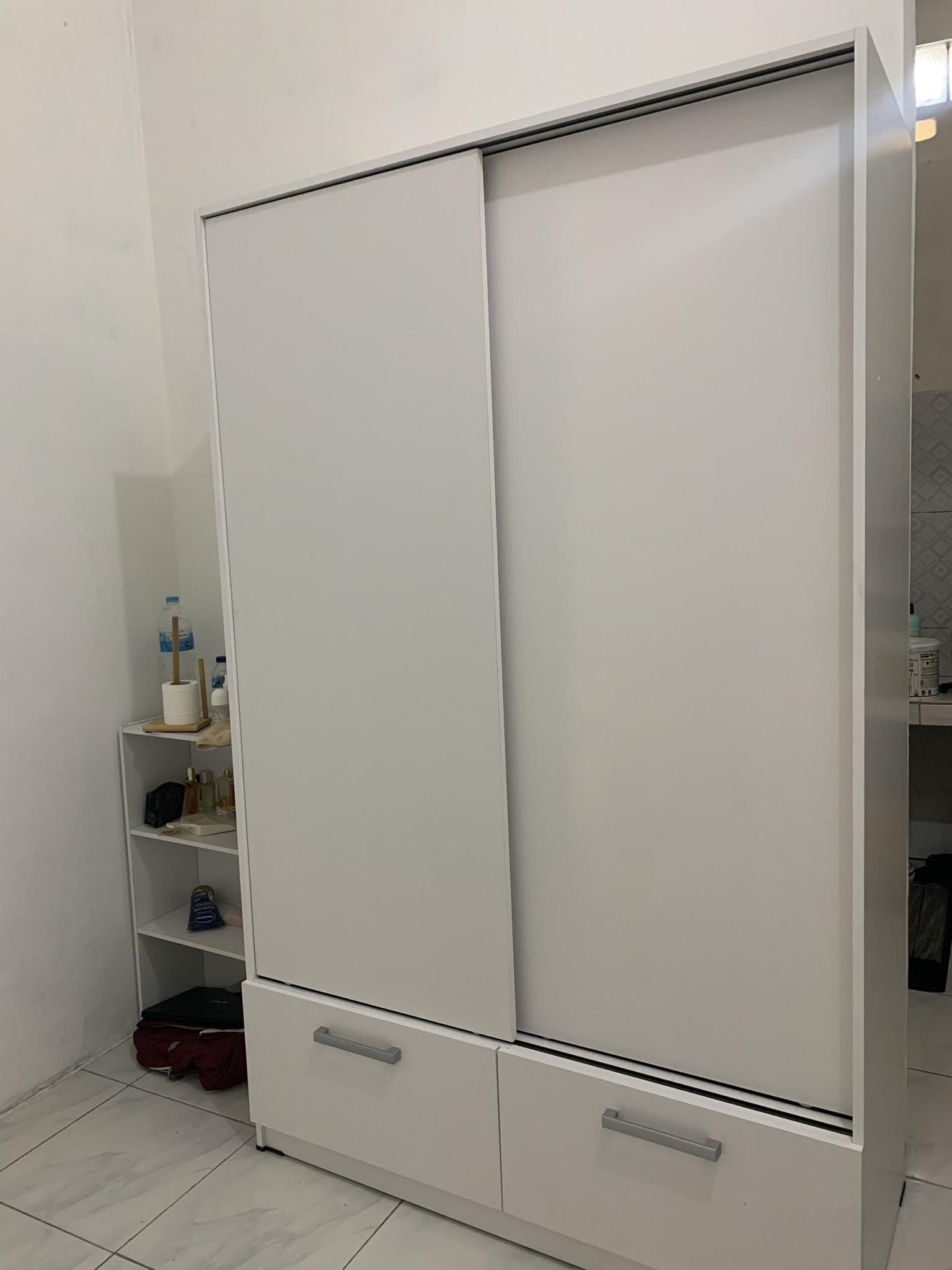 Lemari besar, lemari kecil, kasur 1, kulkas mini 1, lemari plastik 2, dus2, 1 koper,