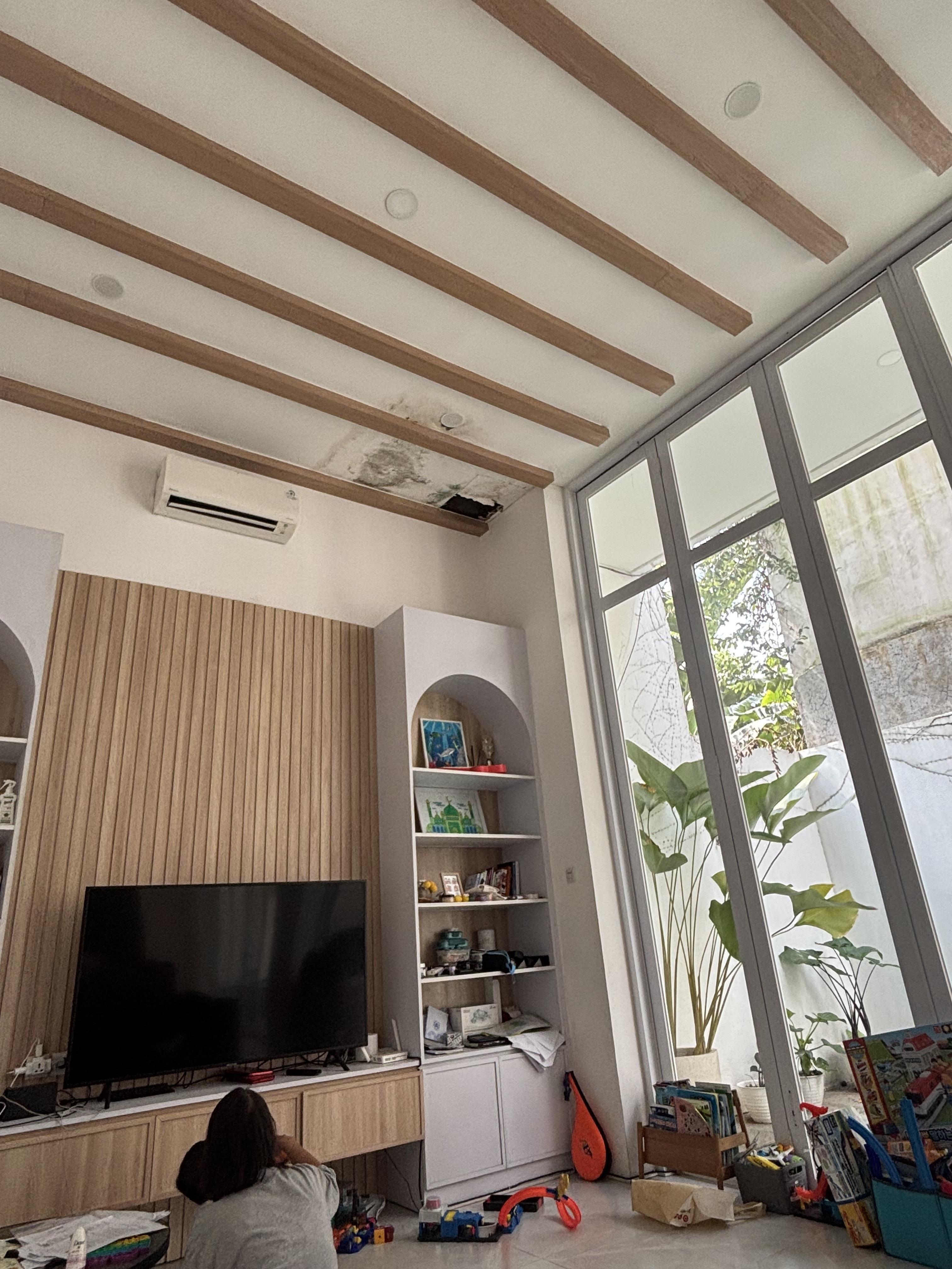 Bongkar plafon gypsum lama dan pasang plafon gypsum baru