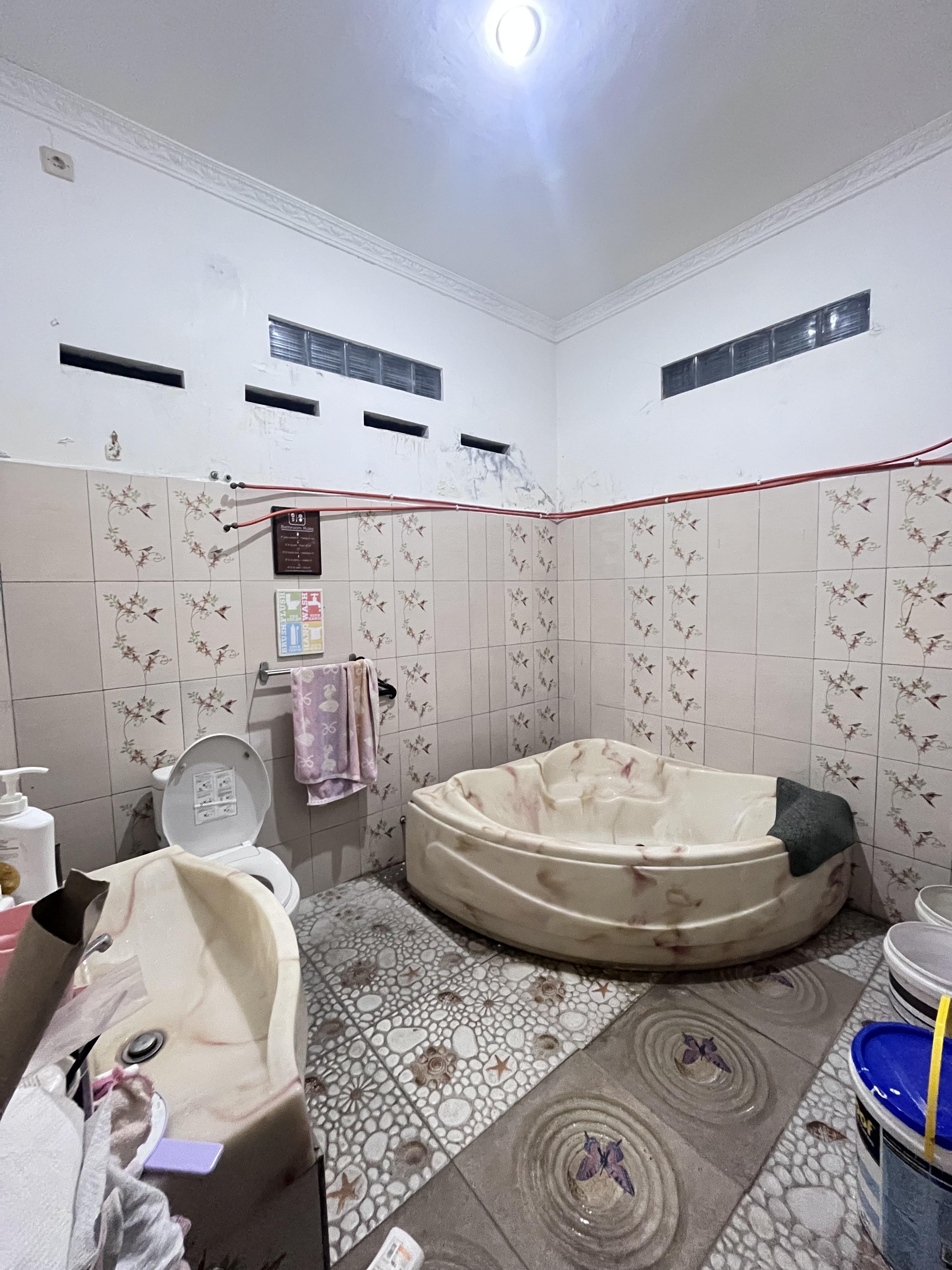 Say punya bathtub di lantai 2, namun belum pernah dipakai karna tidak bisa. Saya juga mau merombak toilet saya agar lebih bersih dan tidak ada binatang yang masuk.