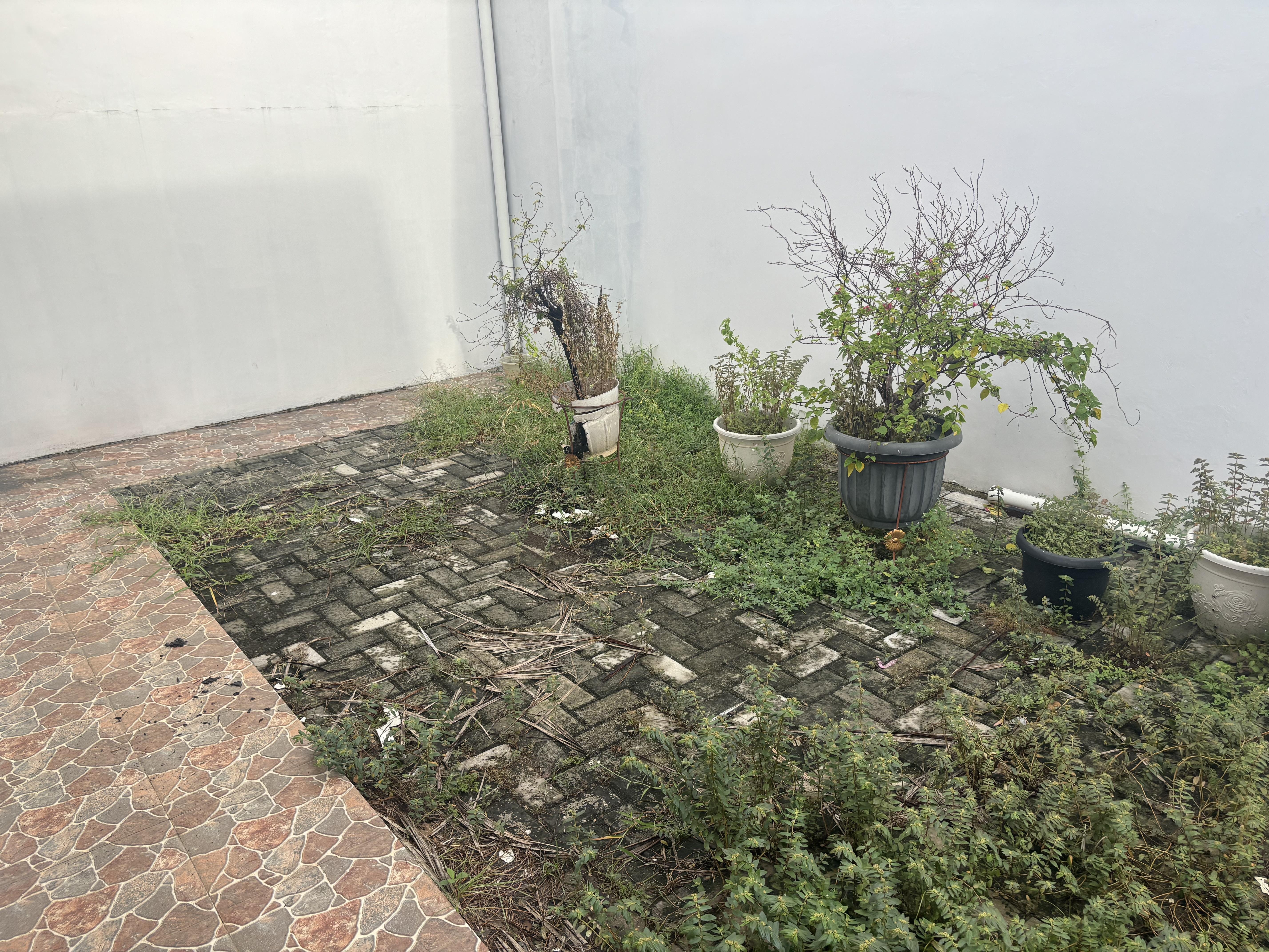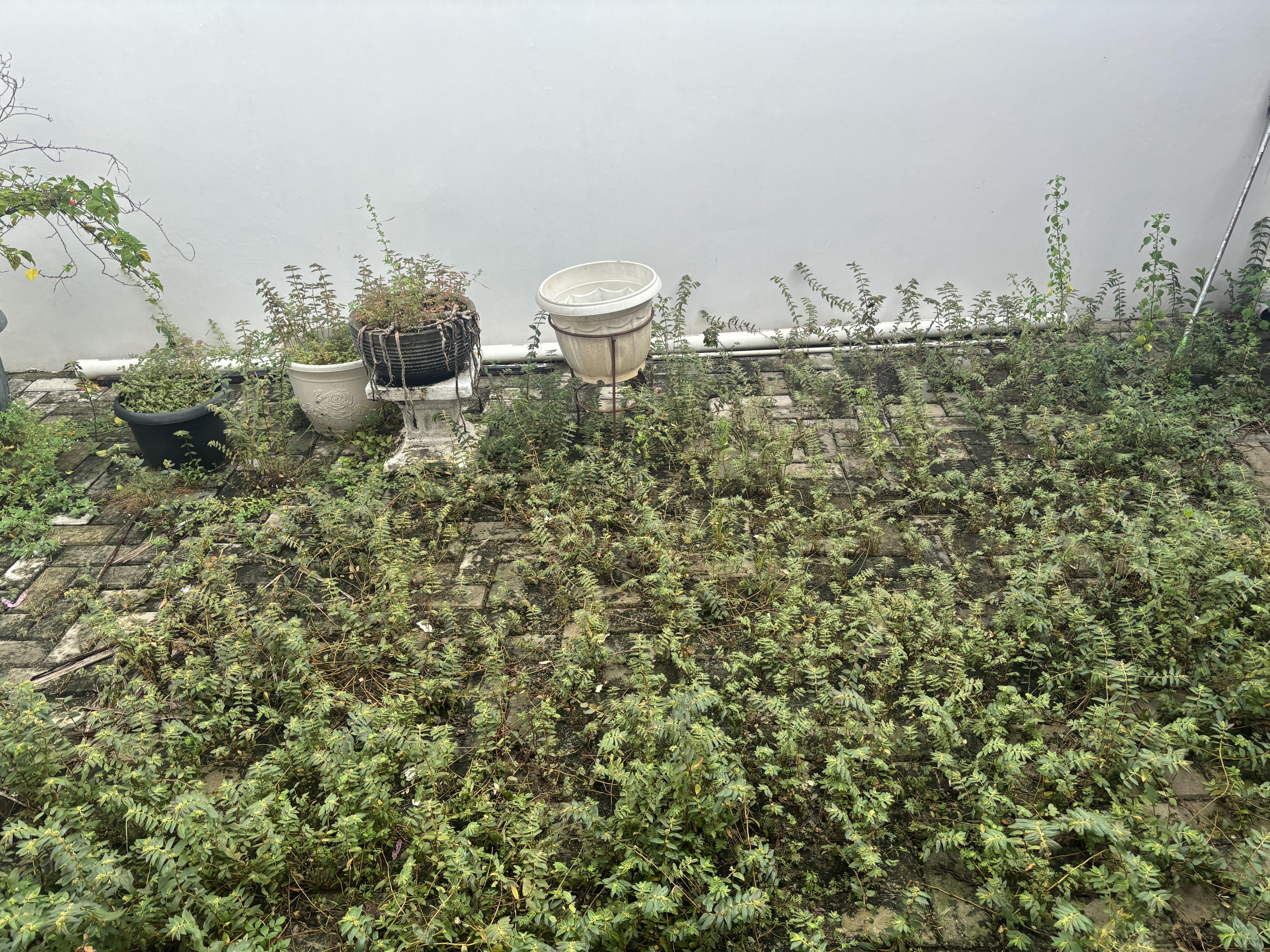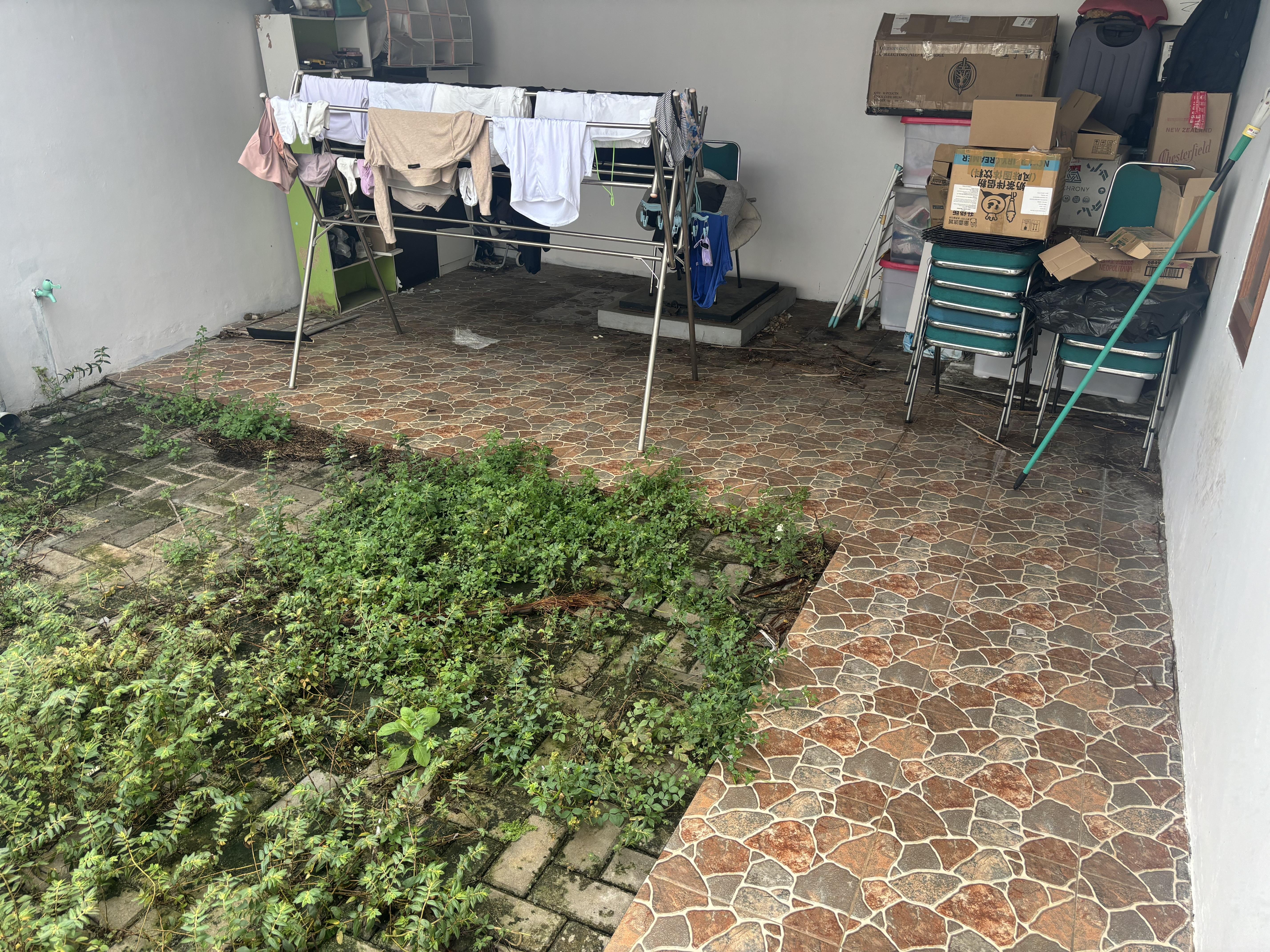 Cabut rumput liar, merapikan taman